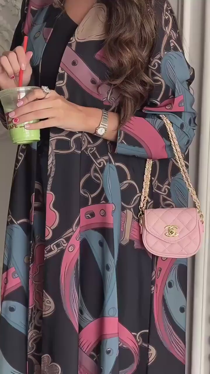 Nuit Parisienne - Abaya Ouverte Imprimé Chaînes Graphiques